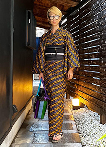 また、アフリカンバティックを使った自身の浴衣ブランド「PEAFOWL TOKYO」や、着物レンタルサロン「KIMONOBLE」のプロデュースを通し、誰もが美しくなれる着物の楽しみ方を提案している。